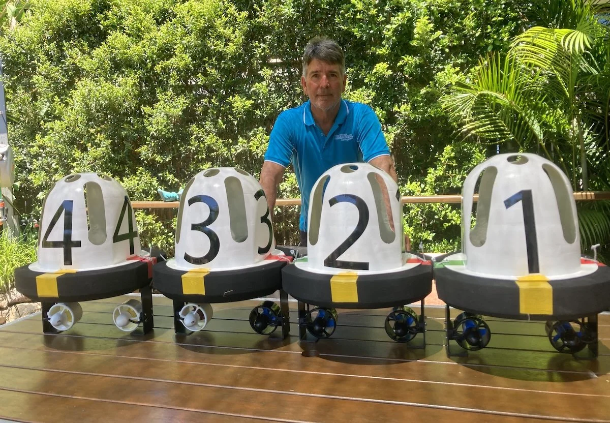 Hand control box with high visibility screen, detailing status of each Buoybot.